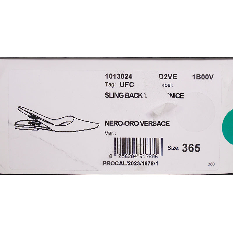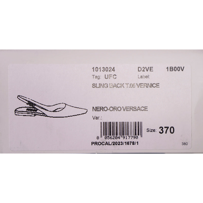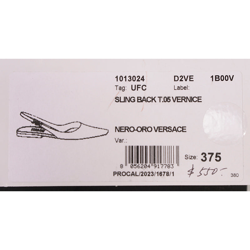 36.5,37,37.5 NEW $795 VERSACE Black Patent Leather GOLD MEDUSA LOGO Slingback FLATS NIB