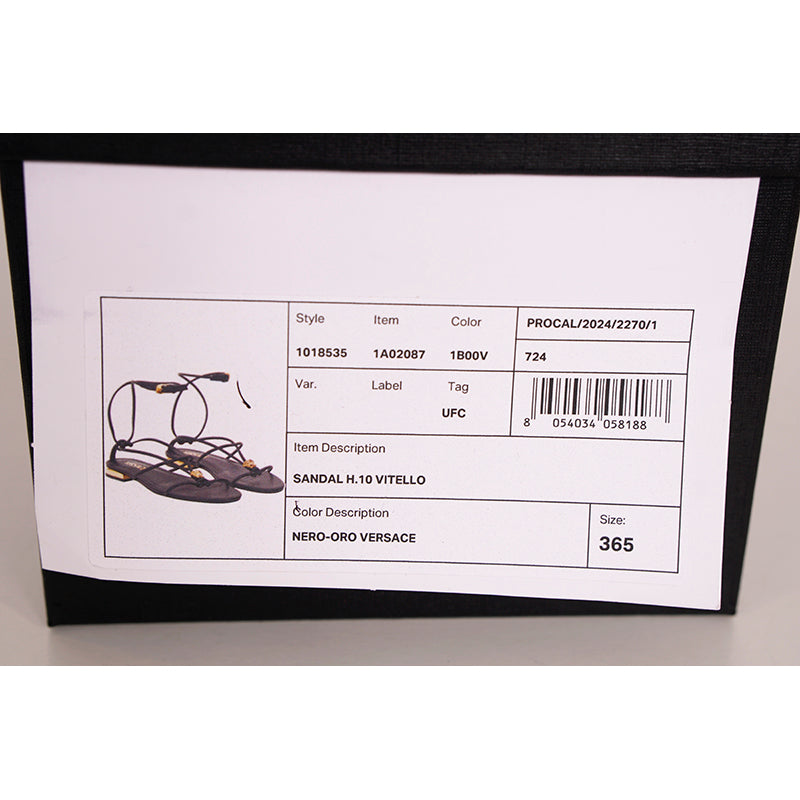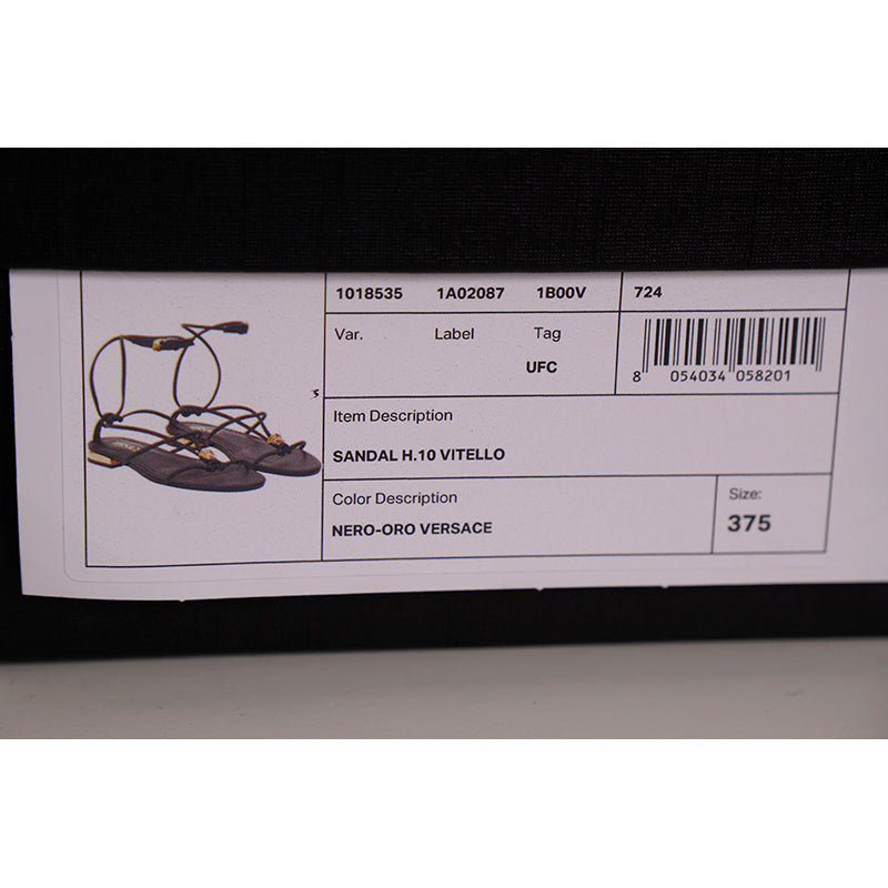 36.5/37.5/38 NEW $995 VERSACE Woman Black Leather GOLD MEDUSA LOGO Ankle Strap SANDALS