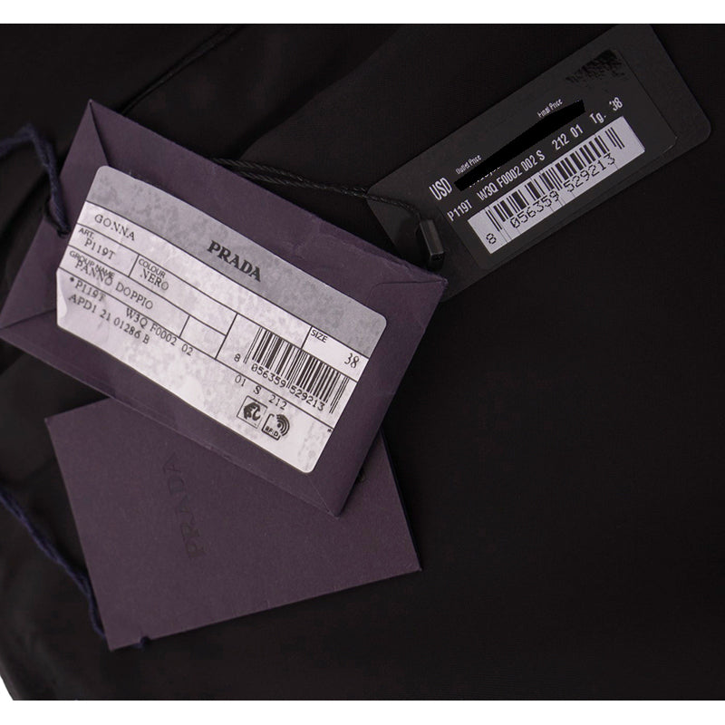 38 NEW $3,160 PRADA Black Wool LARGE METAL LOGO BUTTONS Wrap Midi PENCIL SKIRT