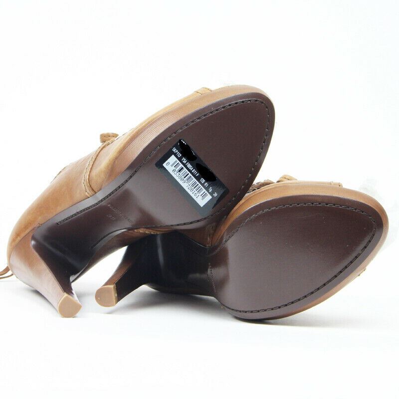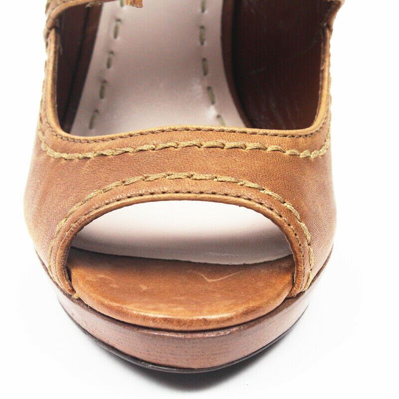 39 US 8.5 NEW $795 MIU MIU RUNWAY Brown WASHED RUGGED LEATHER Open Toe HEELS Bootie