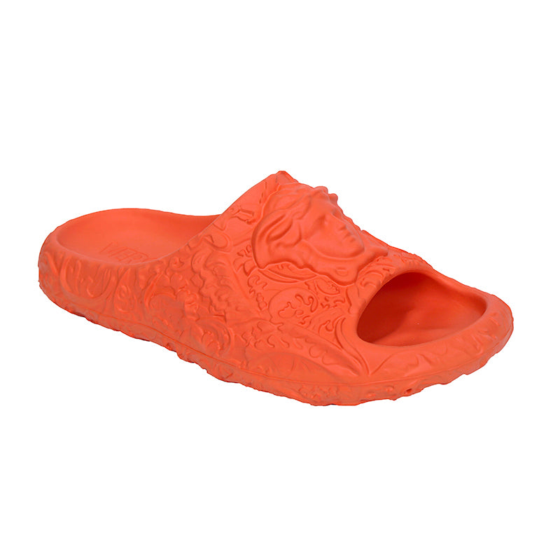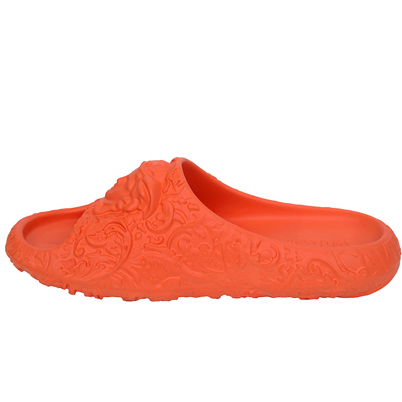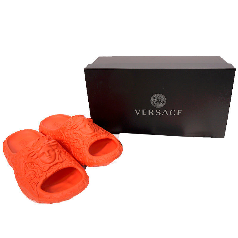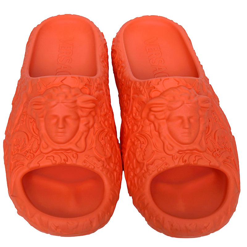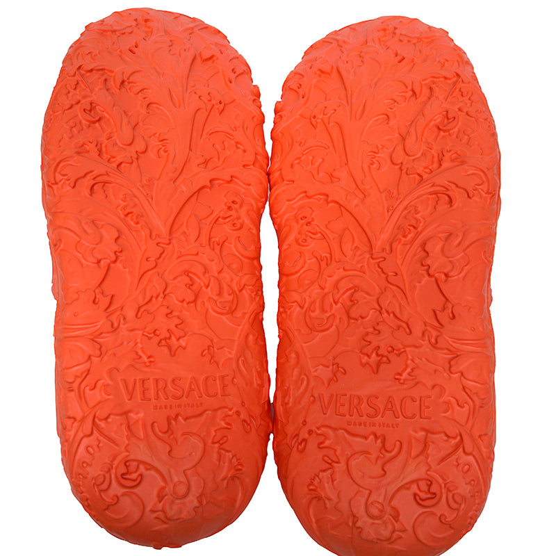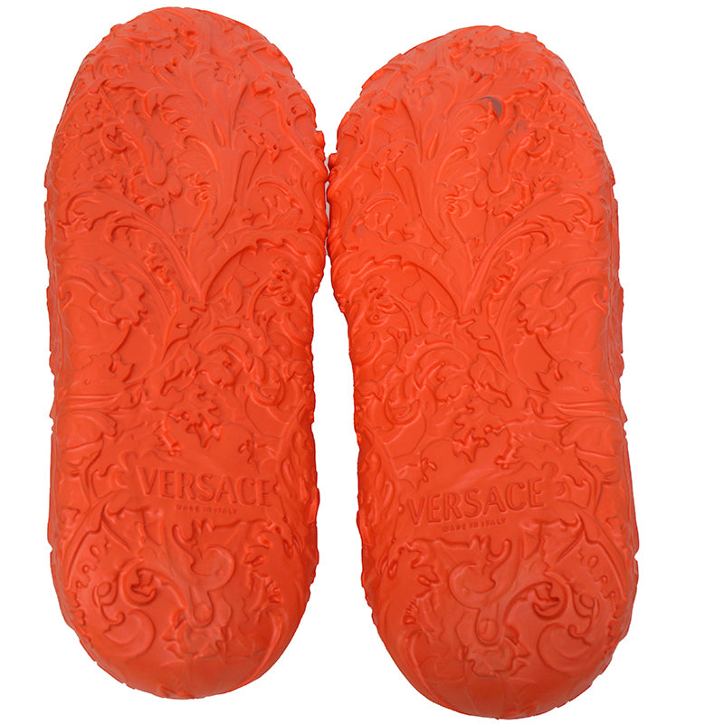42 43 45 NEW $525 VERSACE Men's Orange BAROCCO 3D MEDUSA LOGO Pool SLIDE SANDALS