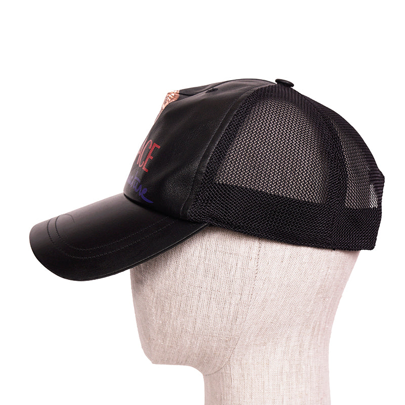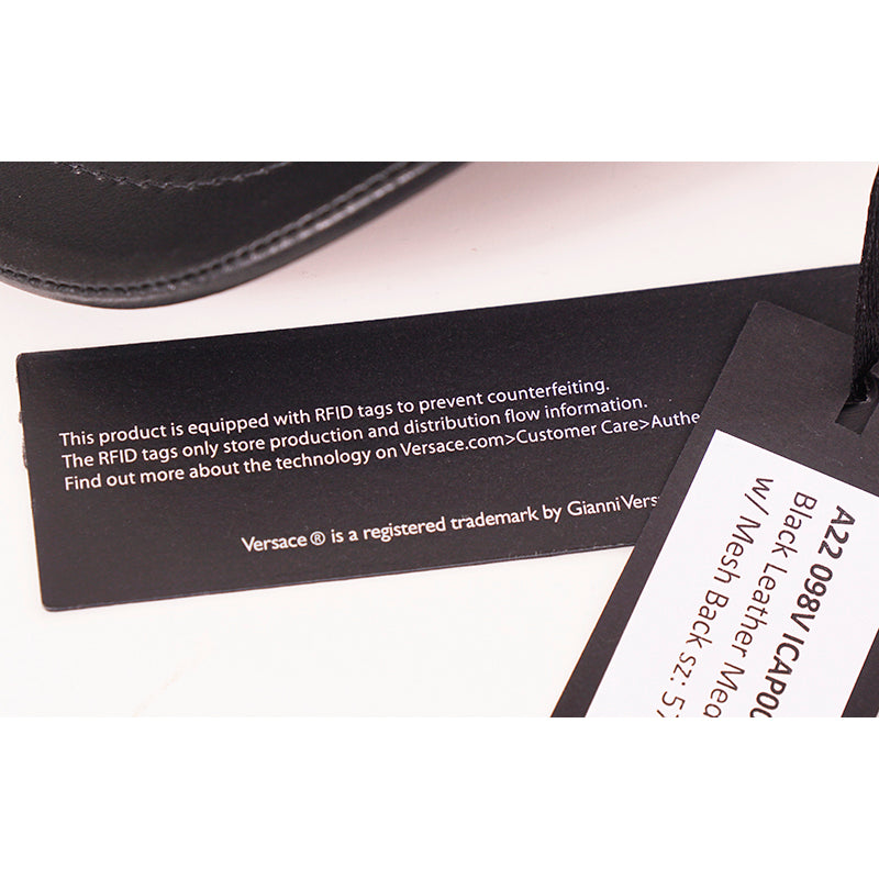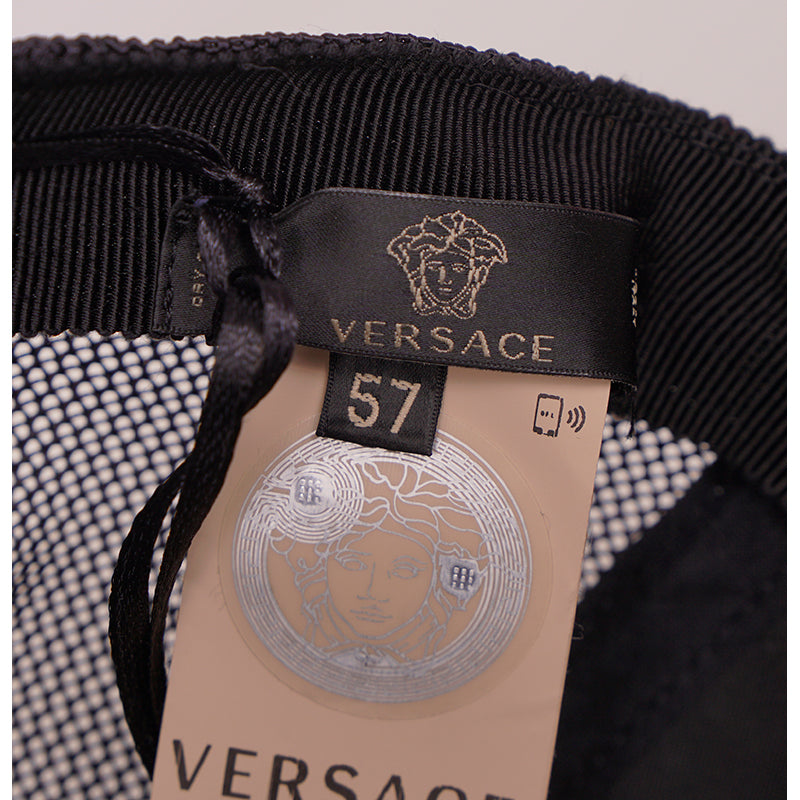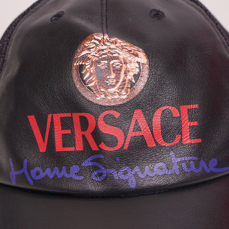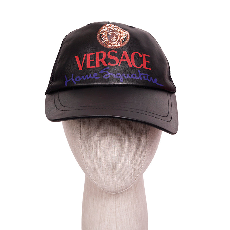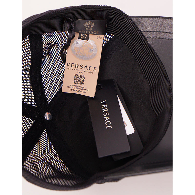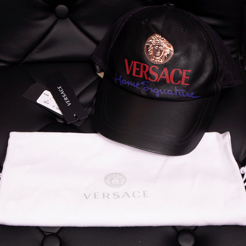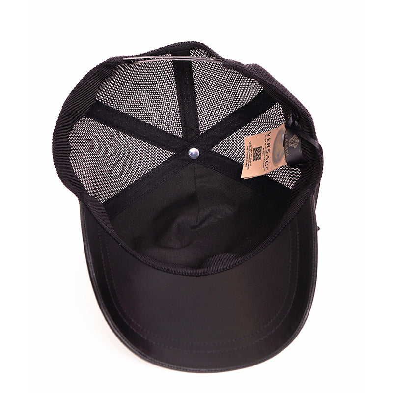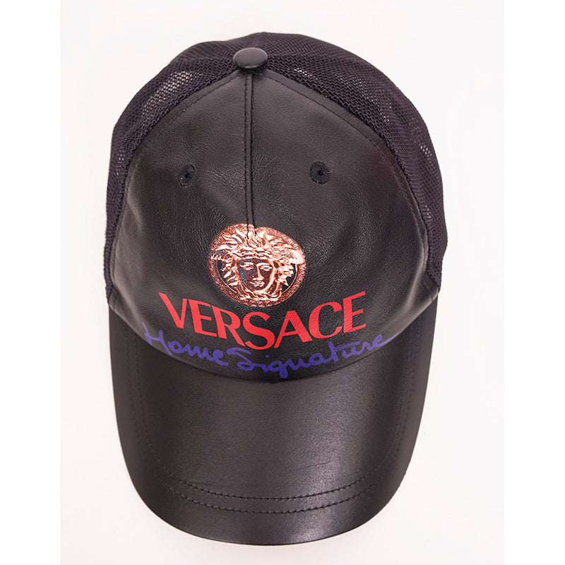 Authentic Versace cap in a great everyday style. Black leather with printed vintage Medusa head. Back is mesh. Adjustable back tab.100% Calf Leather, 100% Polyamide, 65% Polyester, 35% Cotton. Style ICAP004. Made in Italy. Throwback to the trucker style hats, a great collectable.