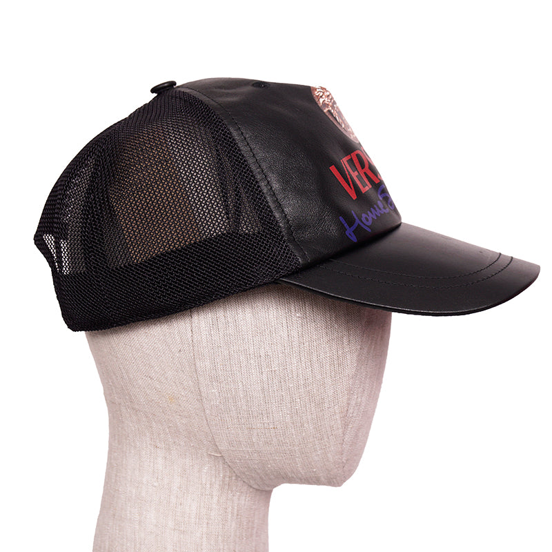 57 NEW $525 VERSACE Black Leather VINTAGE MEDUSA LOGO Trucker BASEBALL CAP HAT