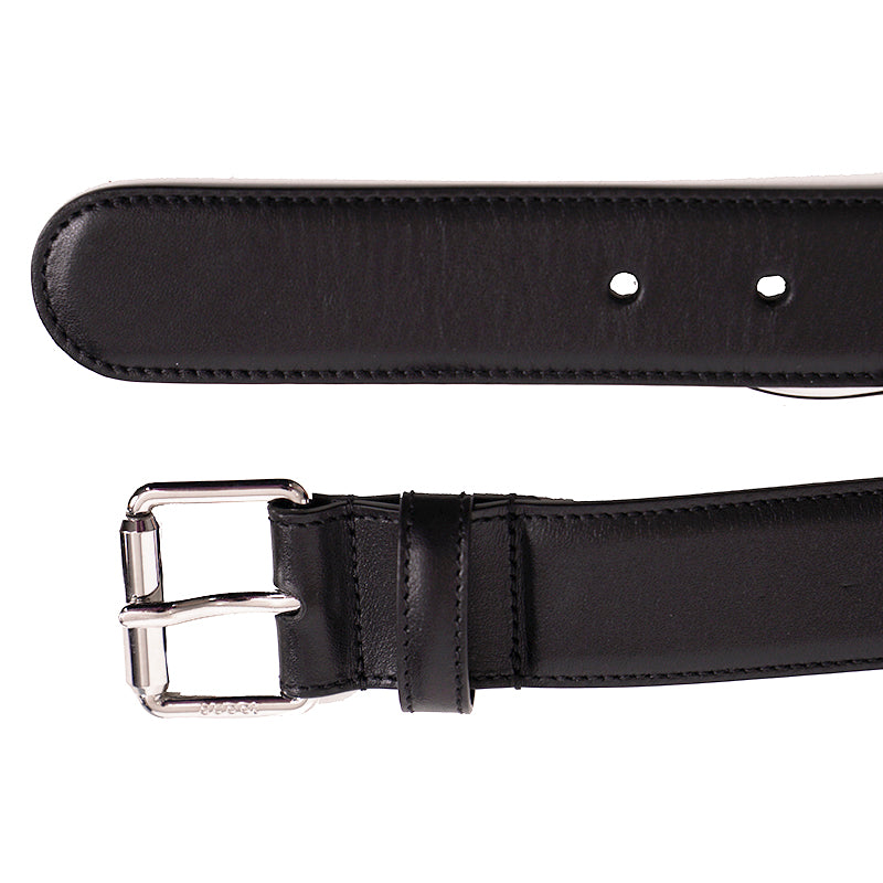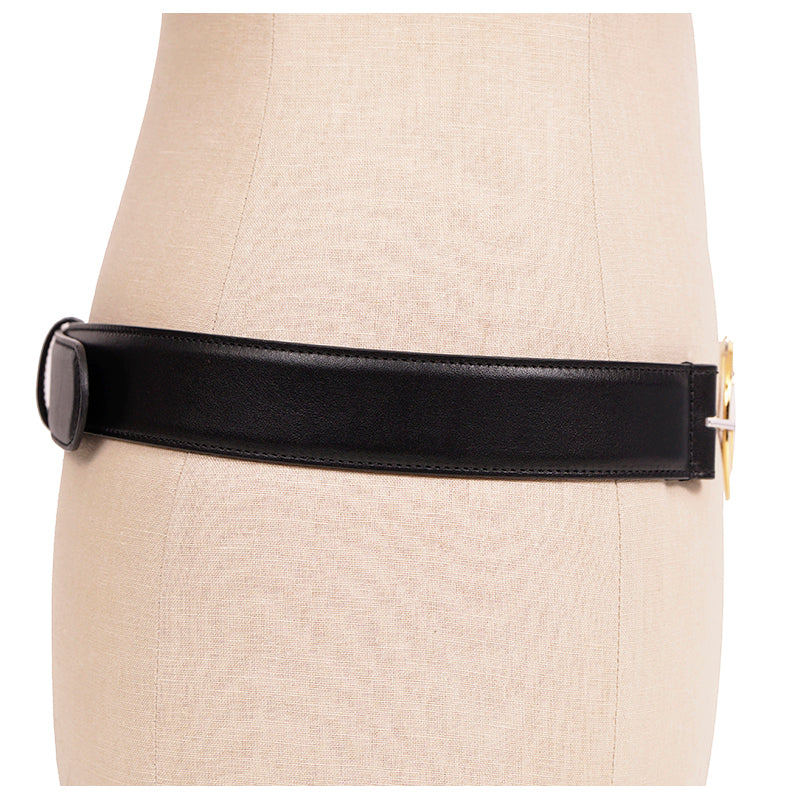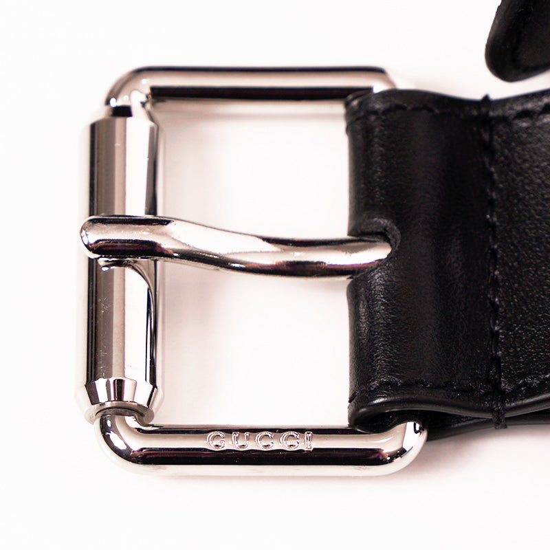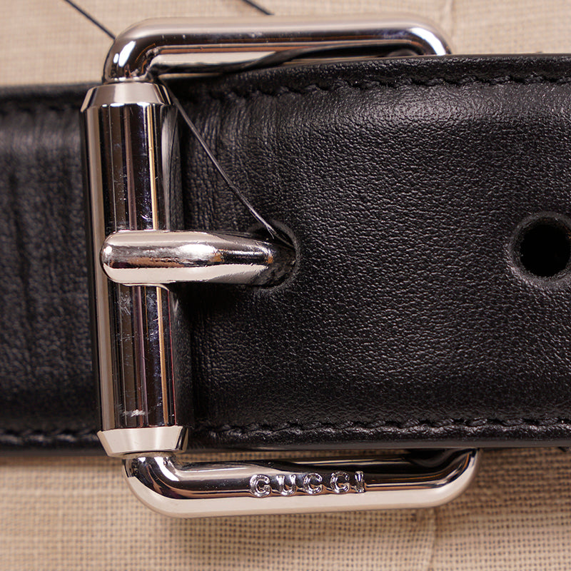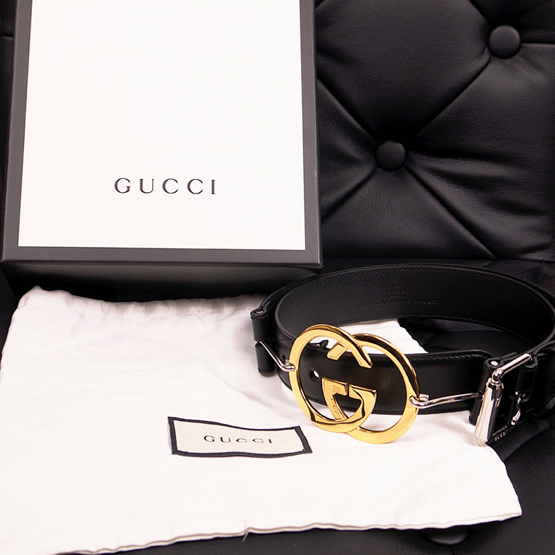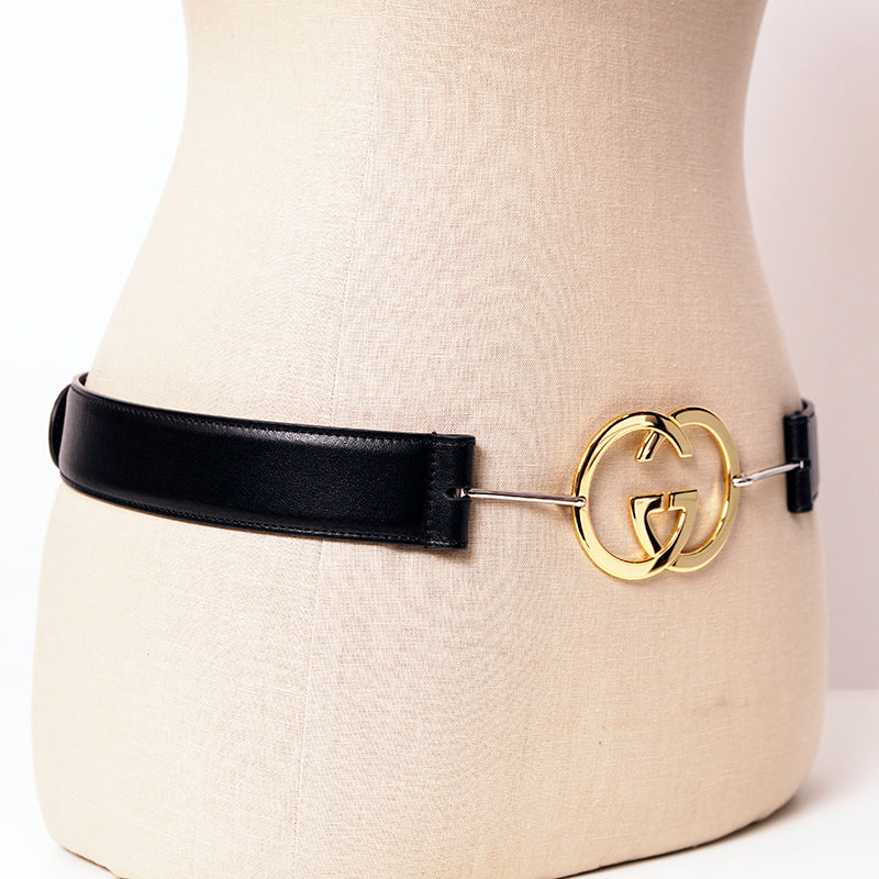 85/34 NEW $970 GUCCI Woman Black Leather GOLD GG INTERLOCKING LOGO Waist BELT