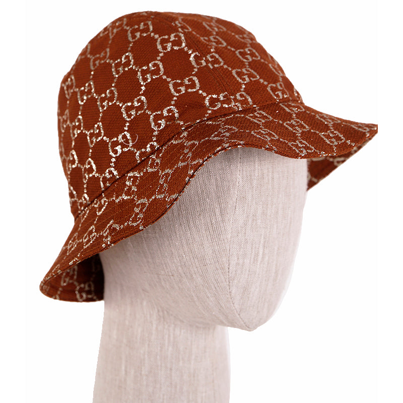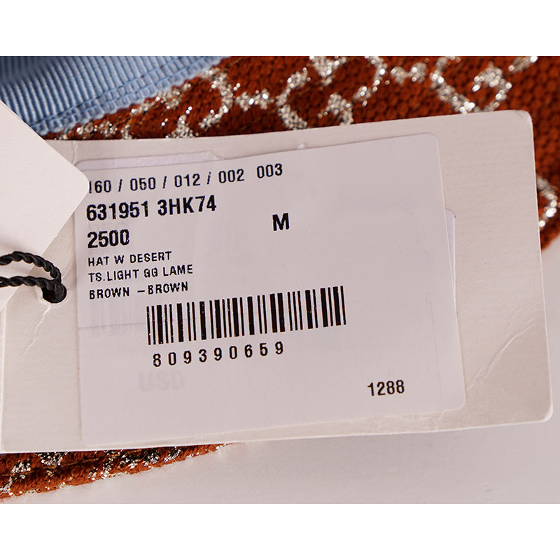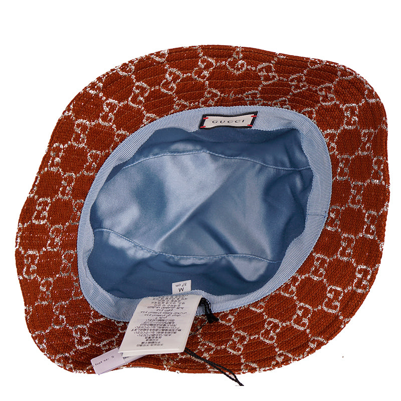 M NEW $590 GUCCI Rust Brown PALE GOLD GG LOGO LAME Wool Blend BUCKET FEDORA HAT