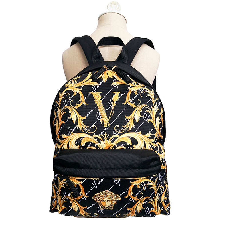 NEW $1,150 VERSACE Black GOLD BAROCCC MEDUSA Signature Print VIRTUS V BACKPACK