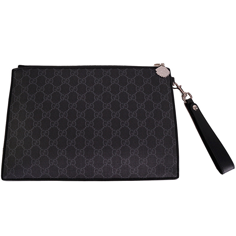 NEW $1,225 GUCCI Black NIGHT COURRIER Supreme Canvas Logo Clutch Wristlet BAG