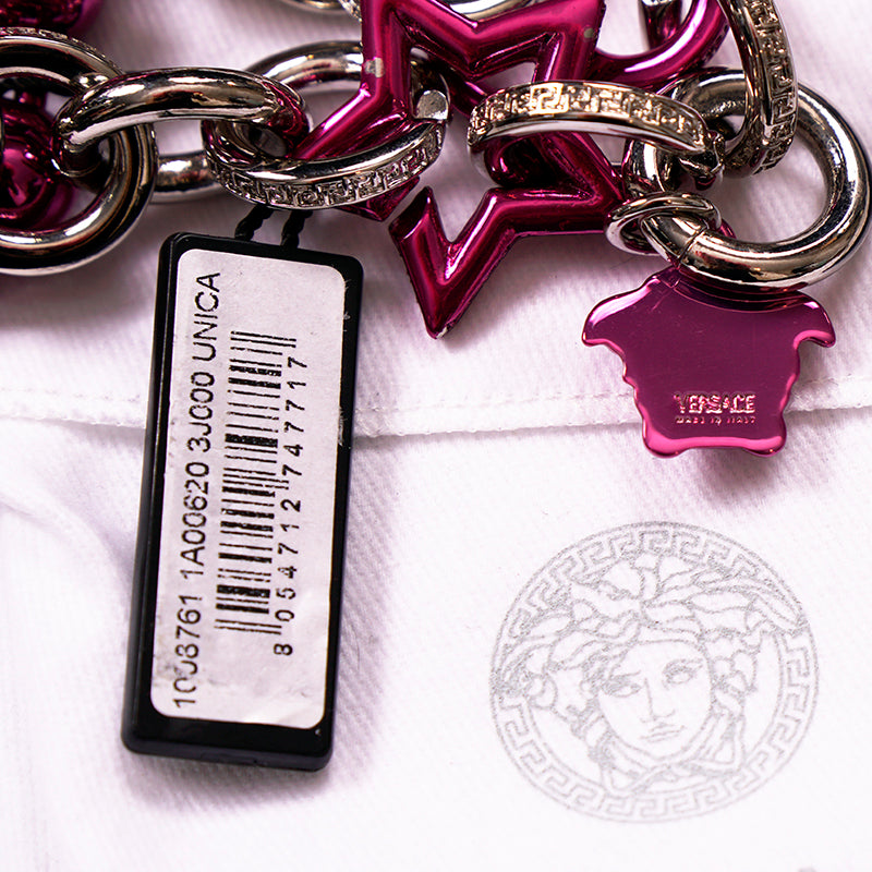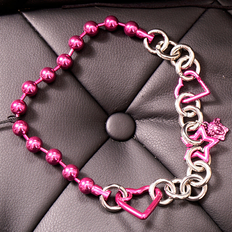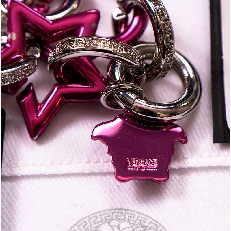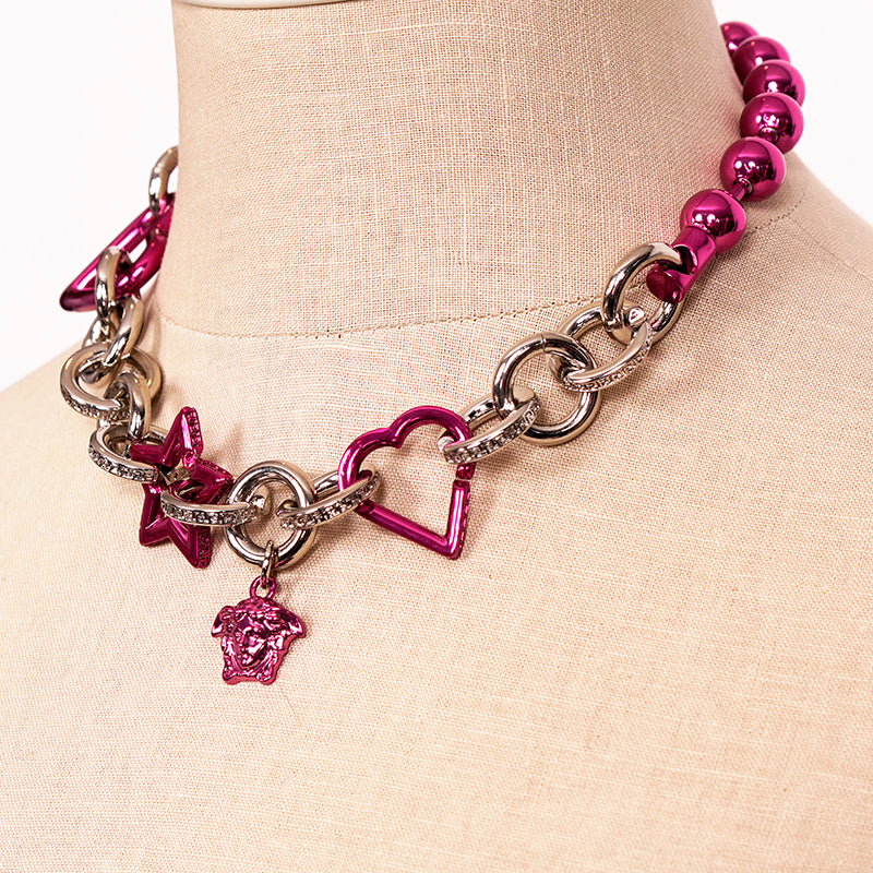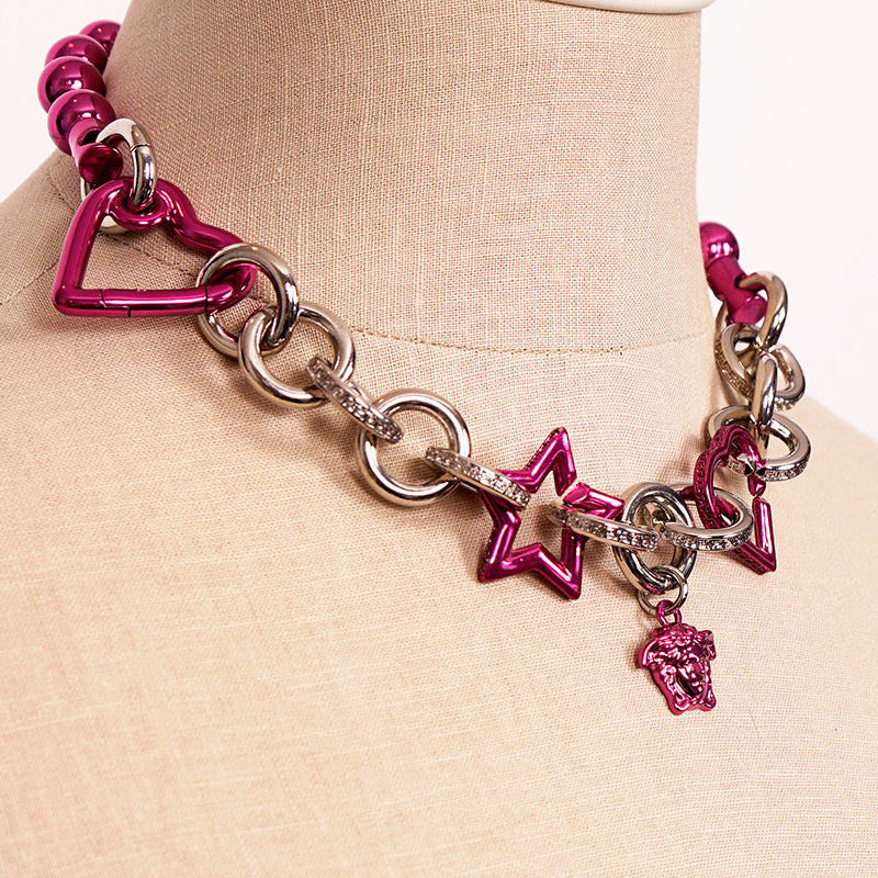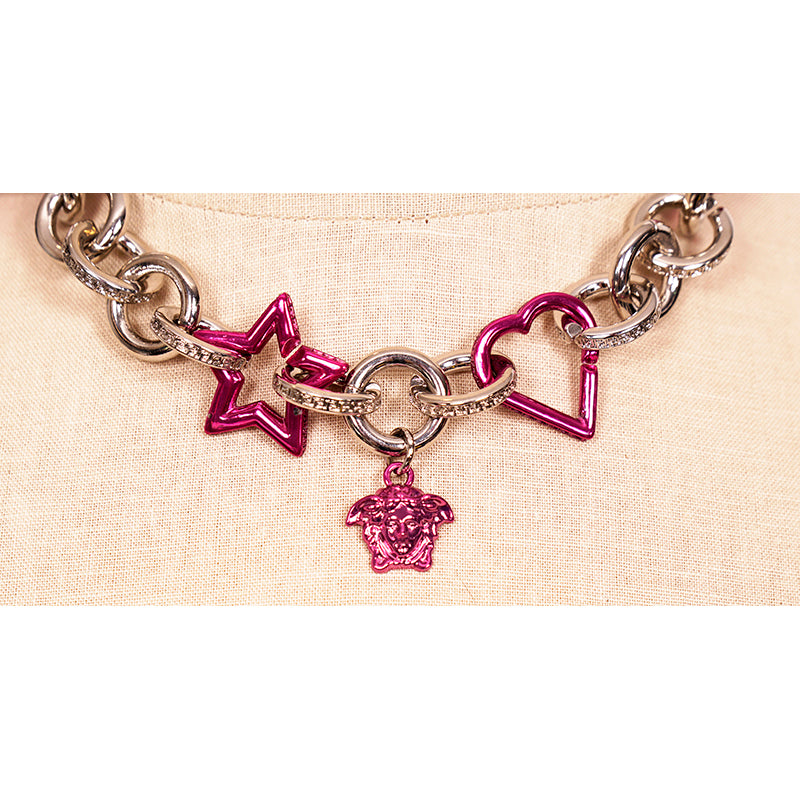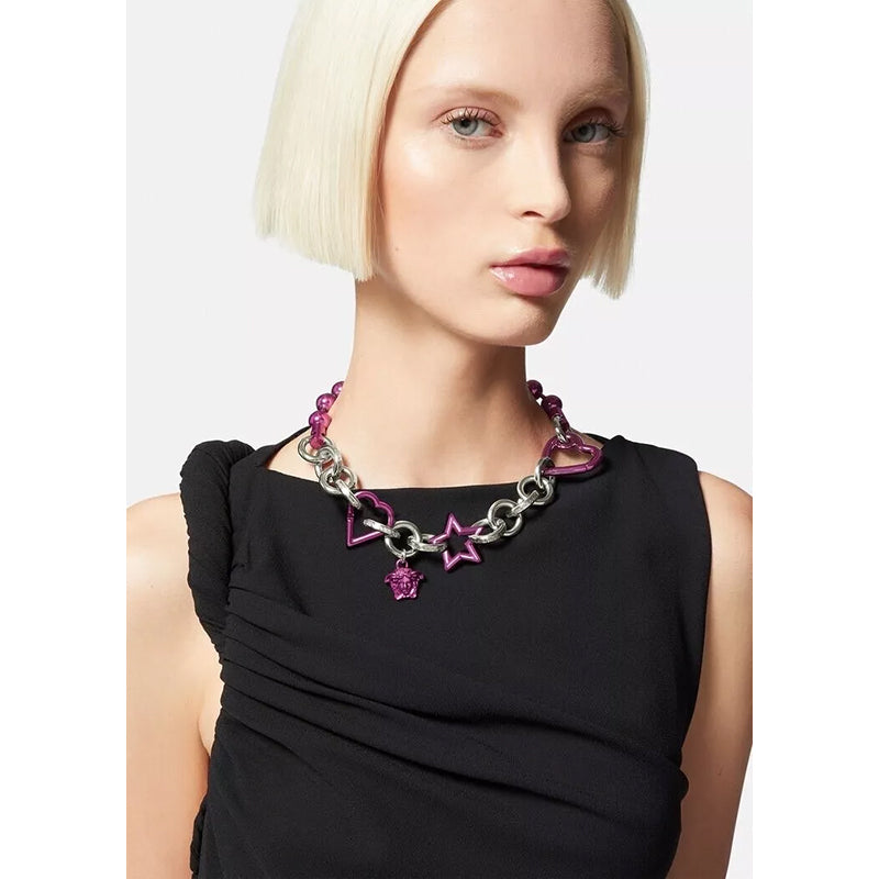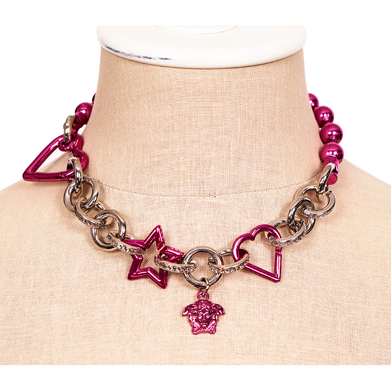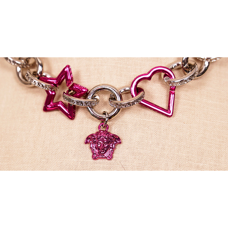 NEW $1,295 VERSACE Pink & Silver MEDUSA CHARM Heart STAR Chunky Chain NECKLACE