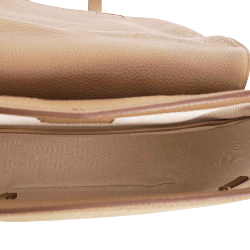 Authentic Bally bag in a chic old-English style. Camel brown wool and cashmere with shearling finish. Grainy leather trim and adjustable crossbody strap with gold-tone hardware. Flap front with buckle strap accents and Bally logo detail. Spacious interior with a slip pocket. A refined mix of textures in a classic neutral tone. Style CHAS/U842O. Made in Italy. Perfect for everyday wear with a sophisticated edge.