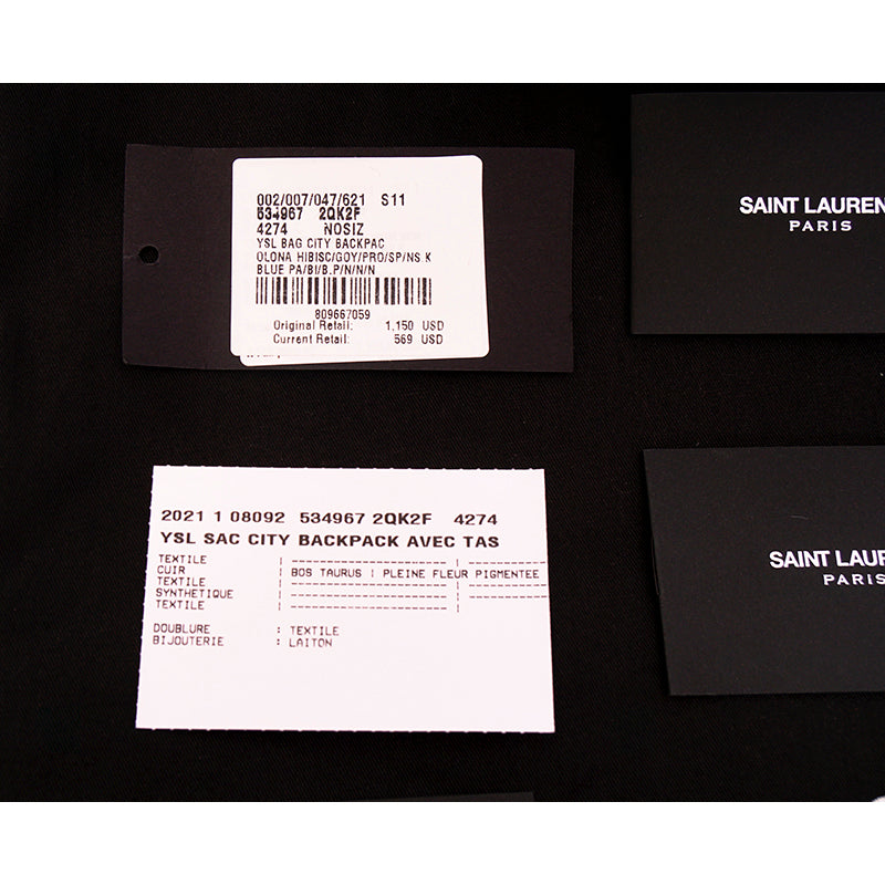 NEW $1150 SAINT LAURENT Blue TROPICAL HIBISCUS FLORAL Canvas CITY BACKPACK Bag