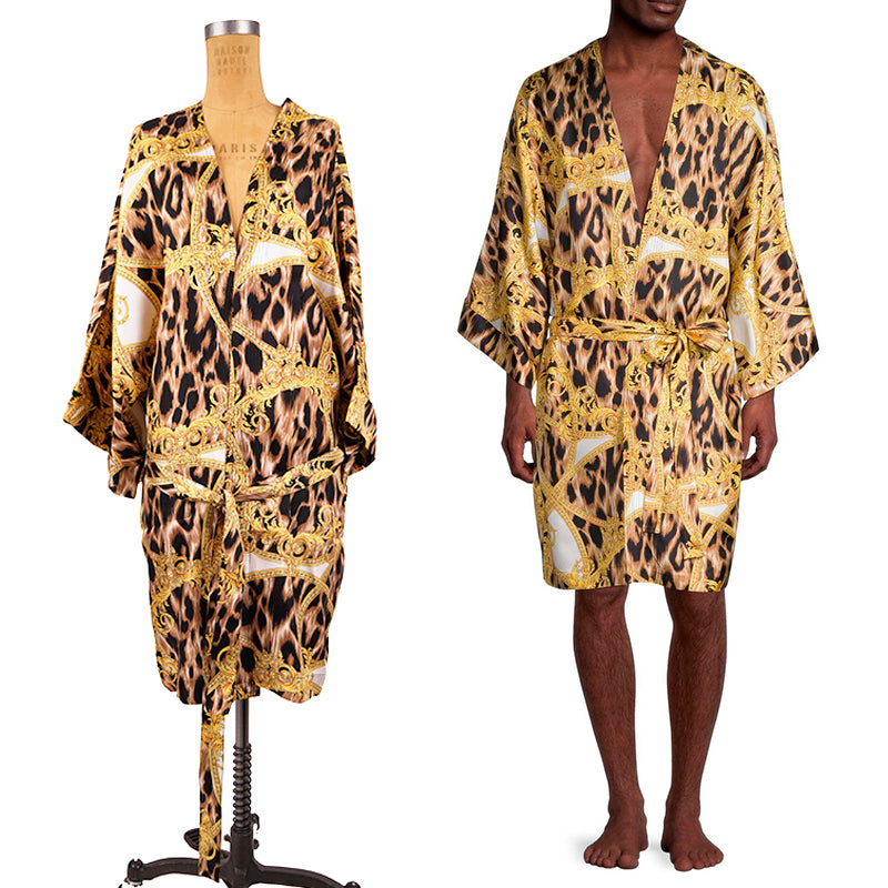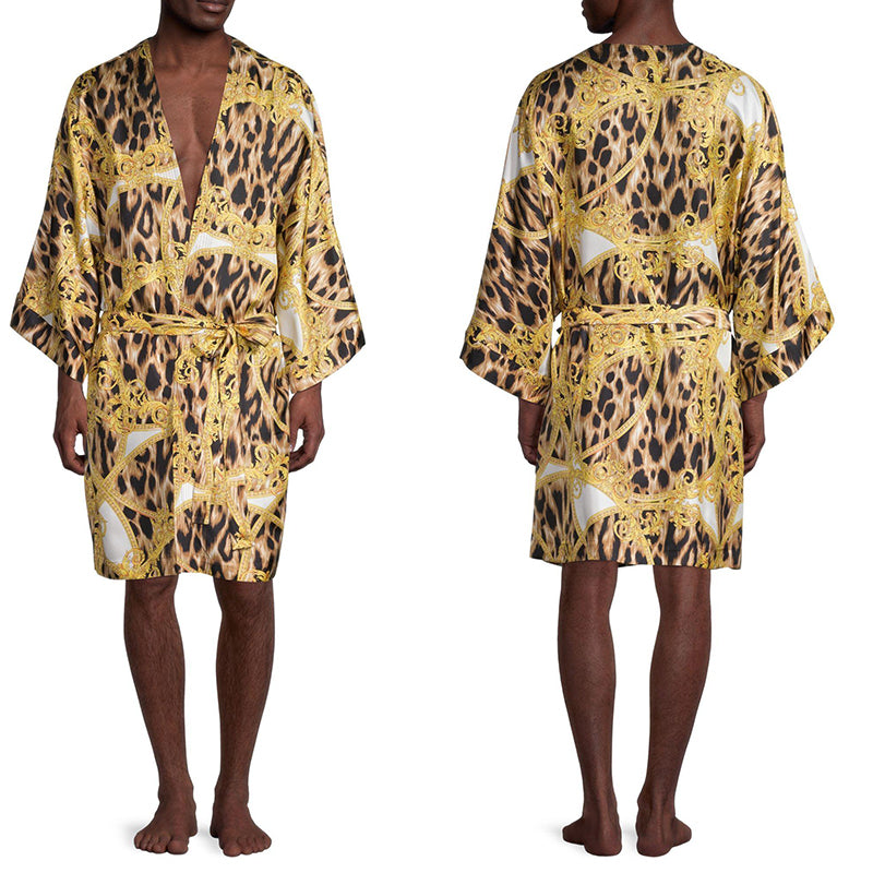 NEW $2195 VERSACE Unisex Barocco Animalier Belted Kimono SILK BATH Dressing ROBE