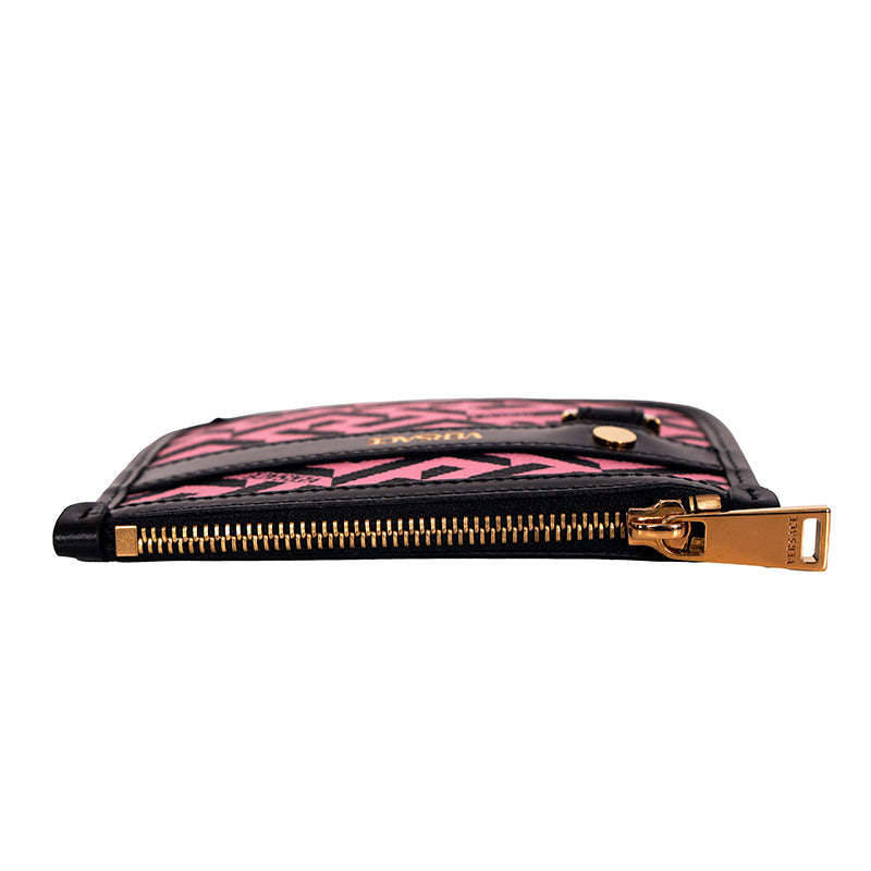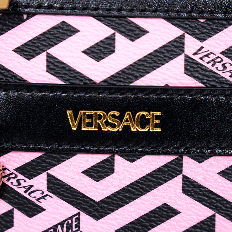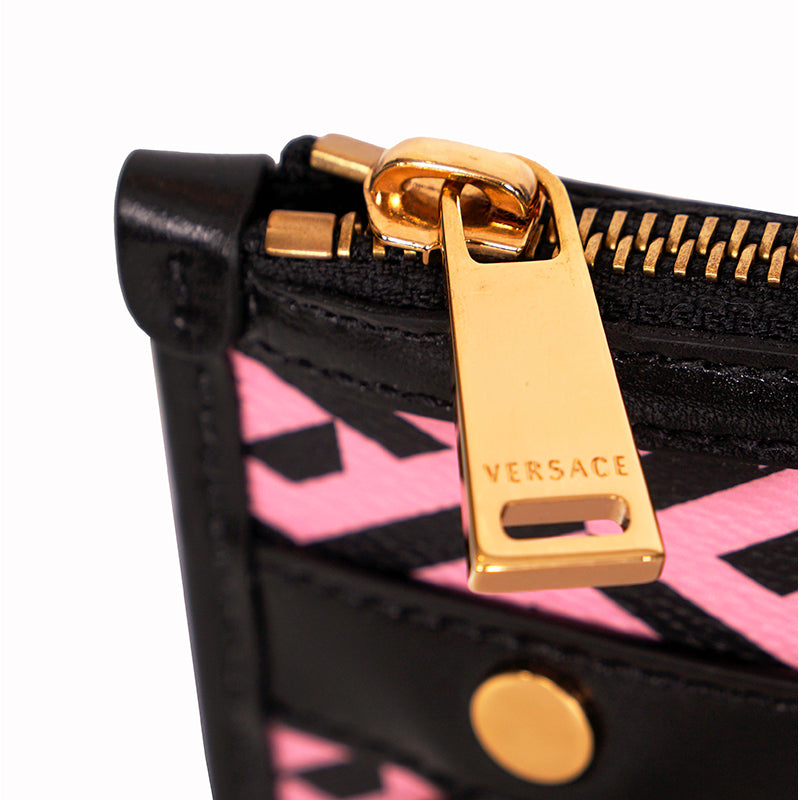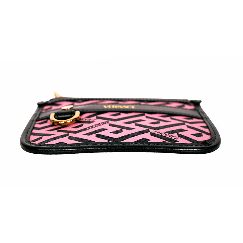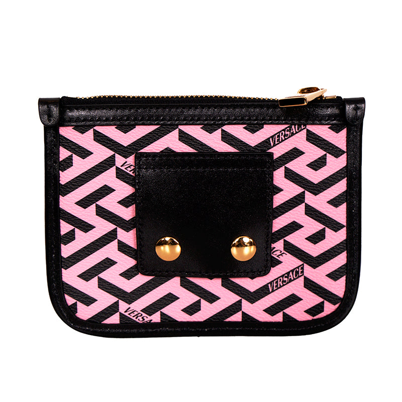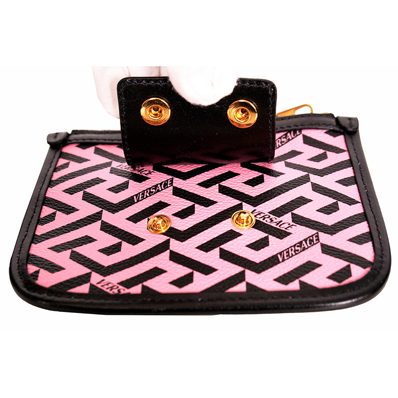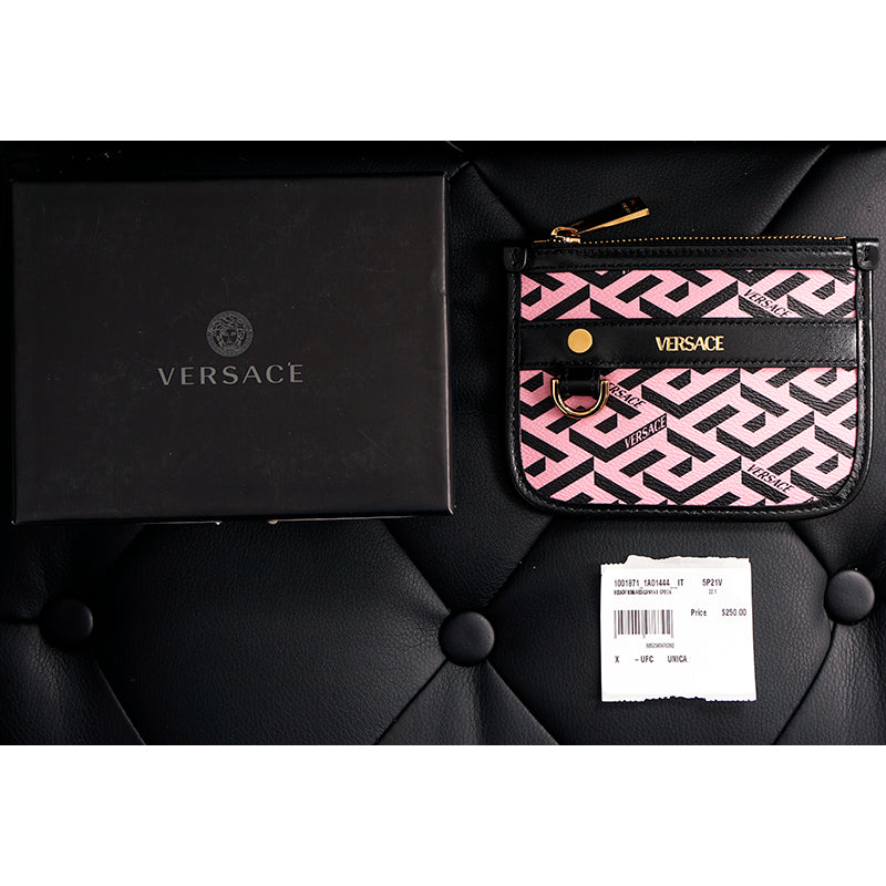 NEW $250 VERSACE Pink Coated Canvas LA GRECA Coin Purse MODULAR POUCH Travel BAG