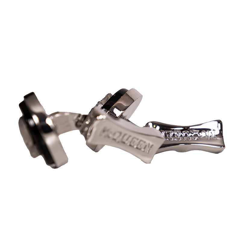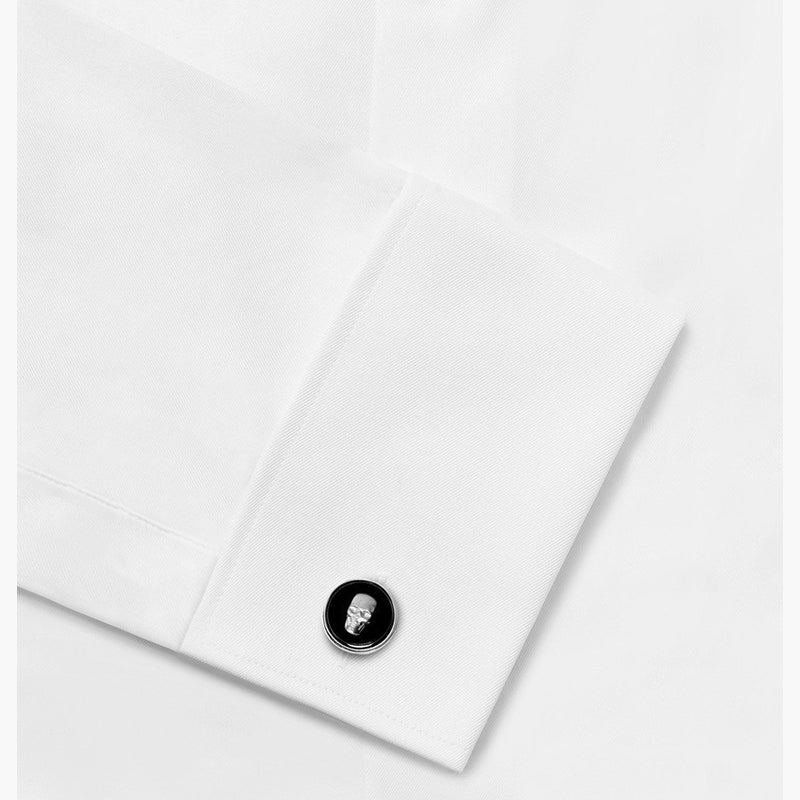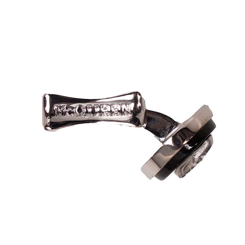 NEW $290 ALEXANDER MCQUEEN Mens Silver Tone Brass GRINNING SKULLS Onyx CUFFLINKS