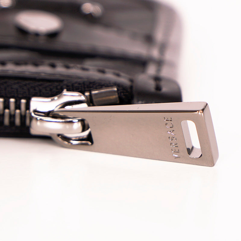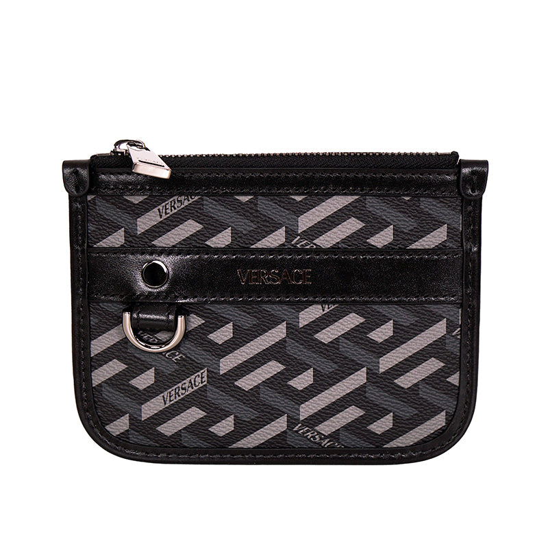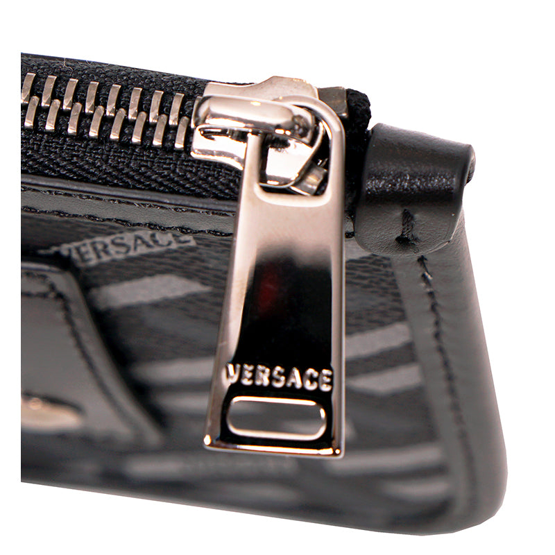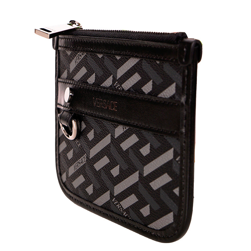 NEW $295 VERSACE Black Gray Coated Canvas LA GRECA Coin MODULAR POUCH Travel BAG