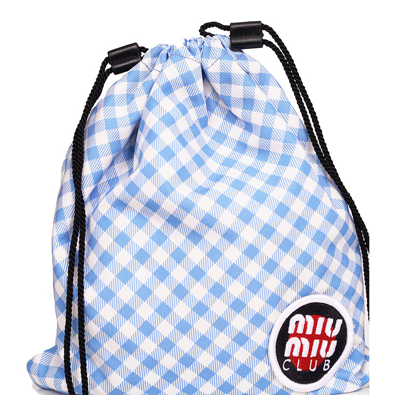 NEW MIU MIU Blue White Gingham CLUB LOGO PATCH Drawstring Small Travel POUCH BAG