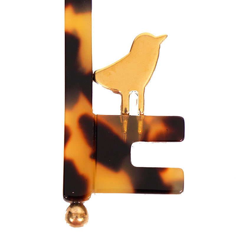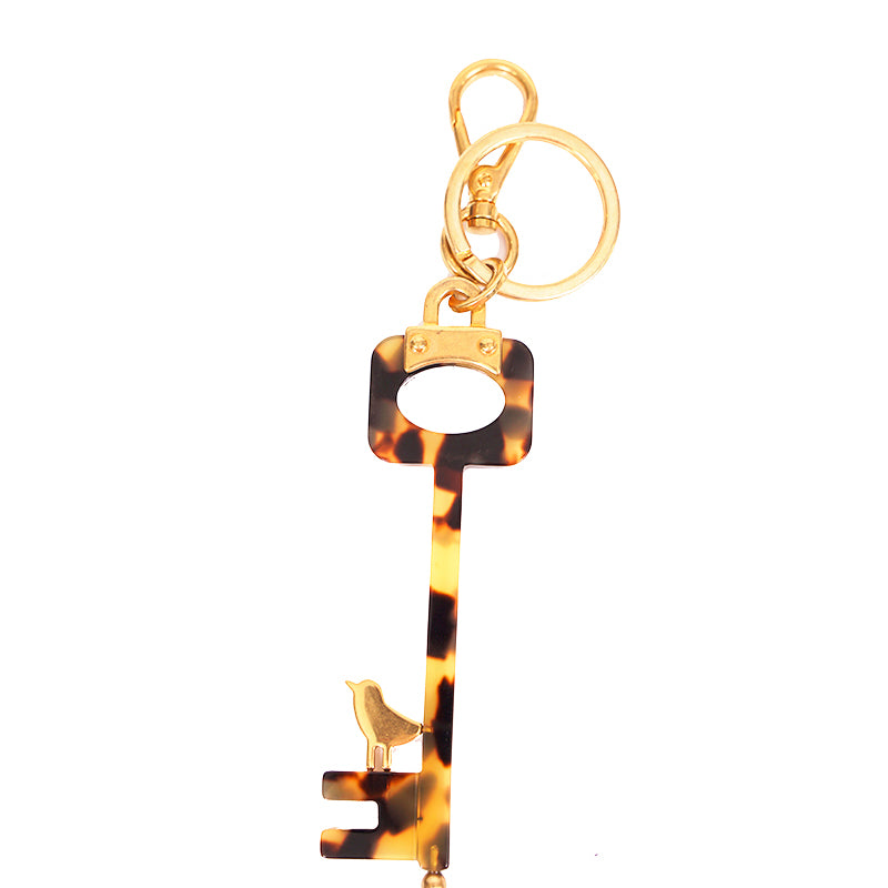 NEW $440 PRADA RUNWAY Gold Tone Metal BIRD Faux Tortoise SKELETON KEY KEYRING