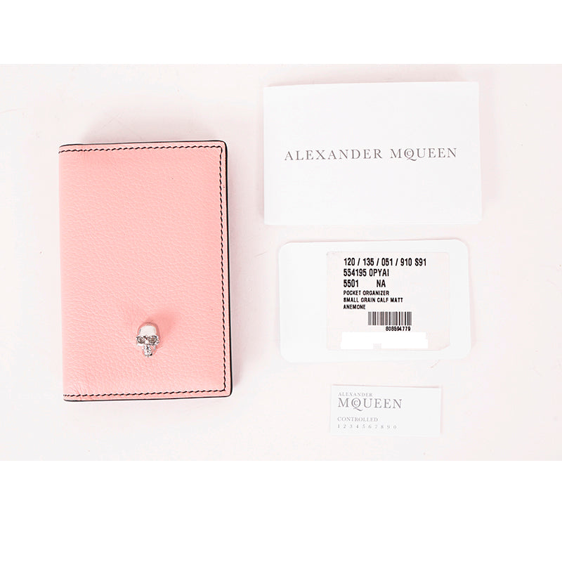 NEW $495 ALEXANDER MCQUEEN Pink Leather Silver Skull POCKET ORGANIZER CARD CASE