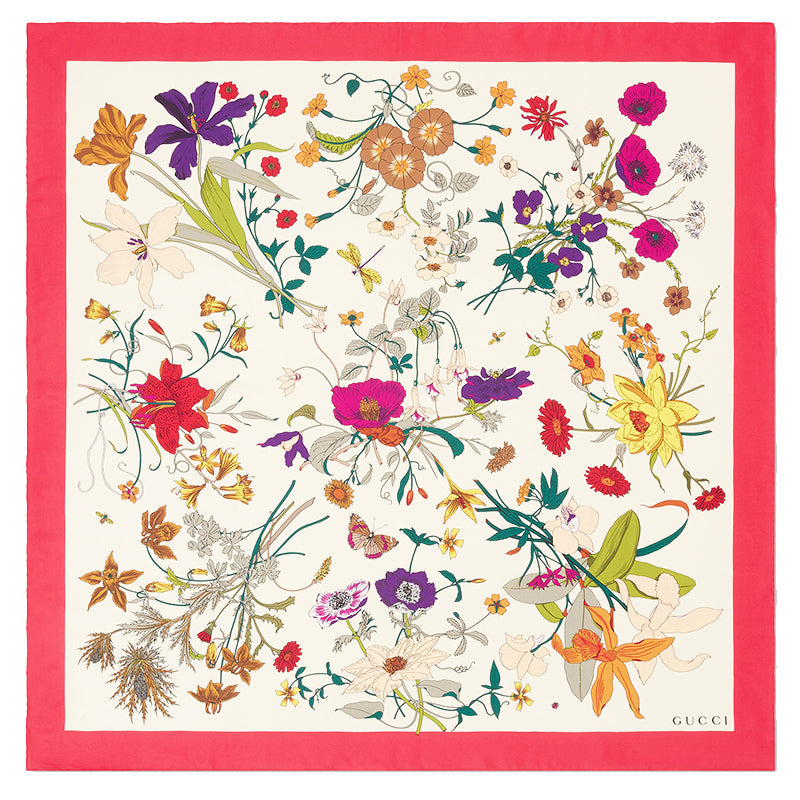 NEW $495 GUCCI Ivory GOTHIC FLORA Multi-Color Floral Print Silk Twill 90cm SCARF