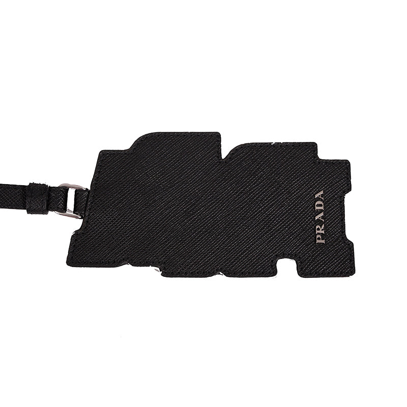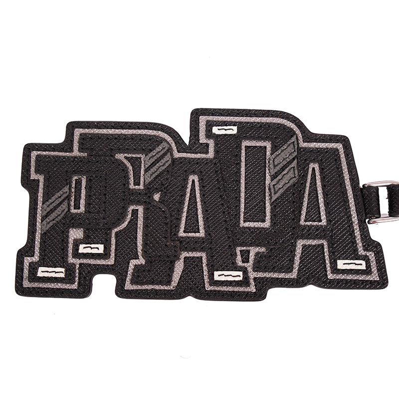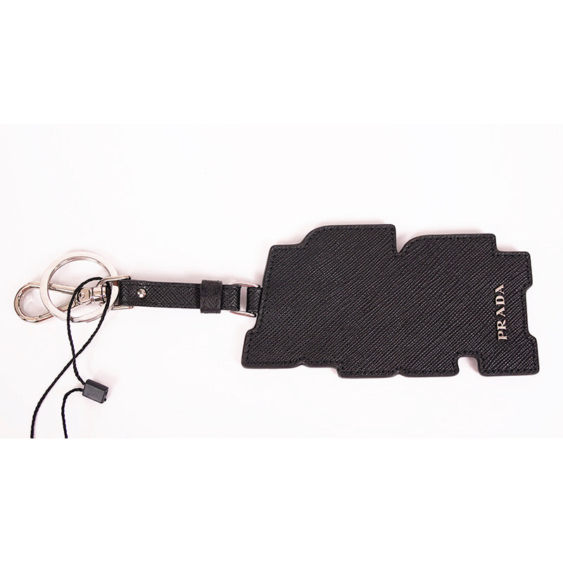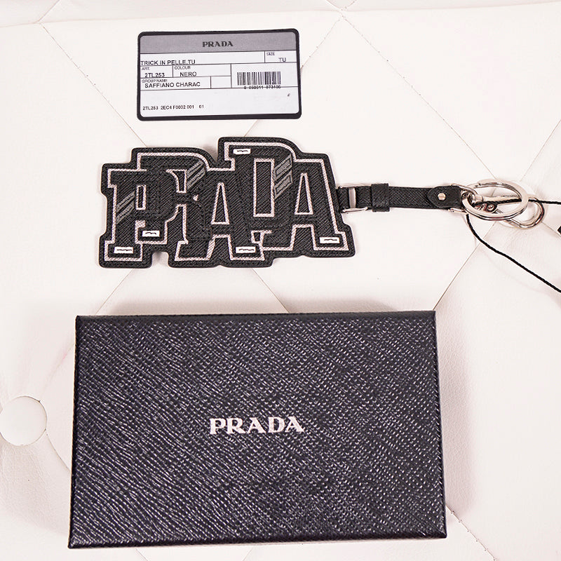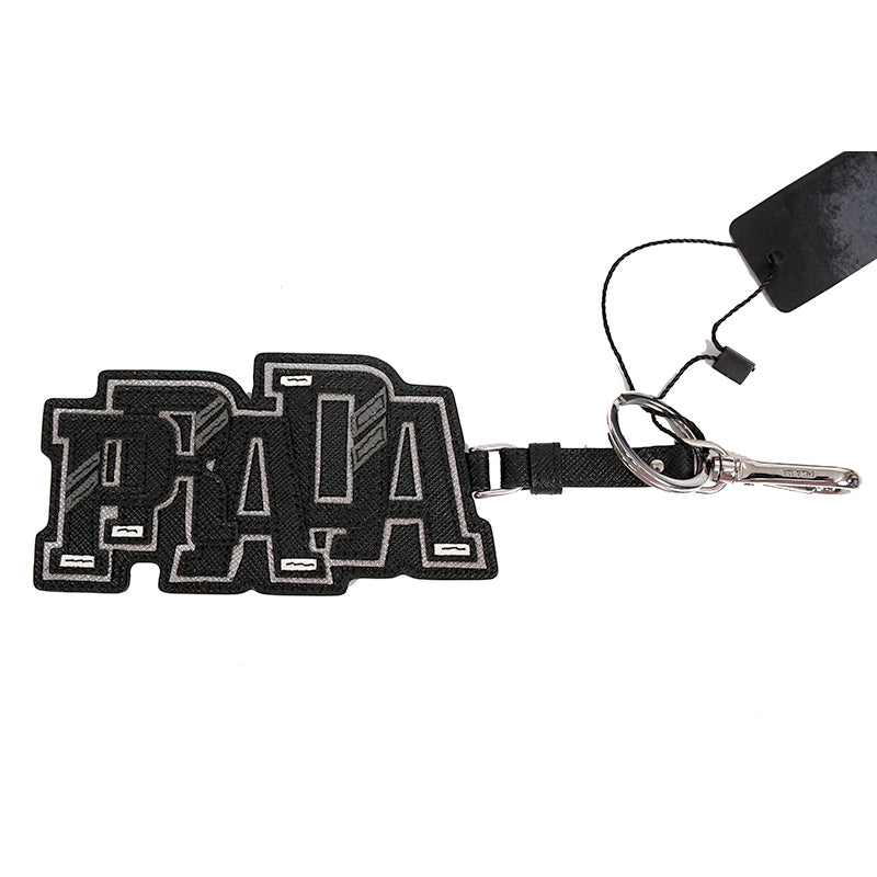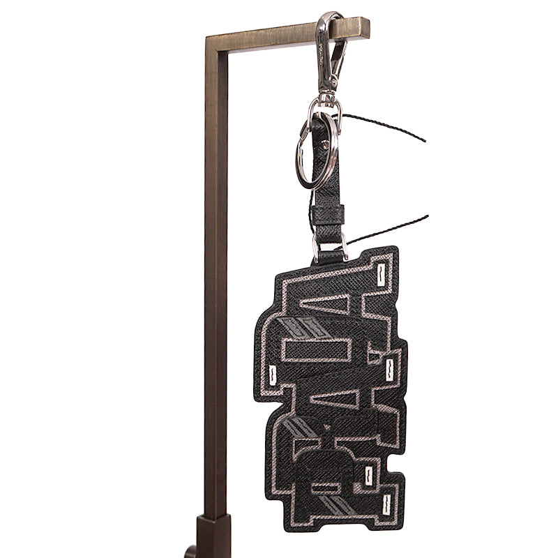 NEW $495 PRADA Preppy LOGO Gray Black SAFFIANO LEATHER Trick KEYRING BAG CHARM
