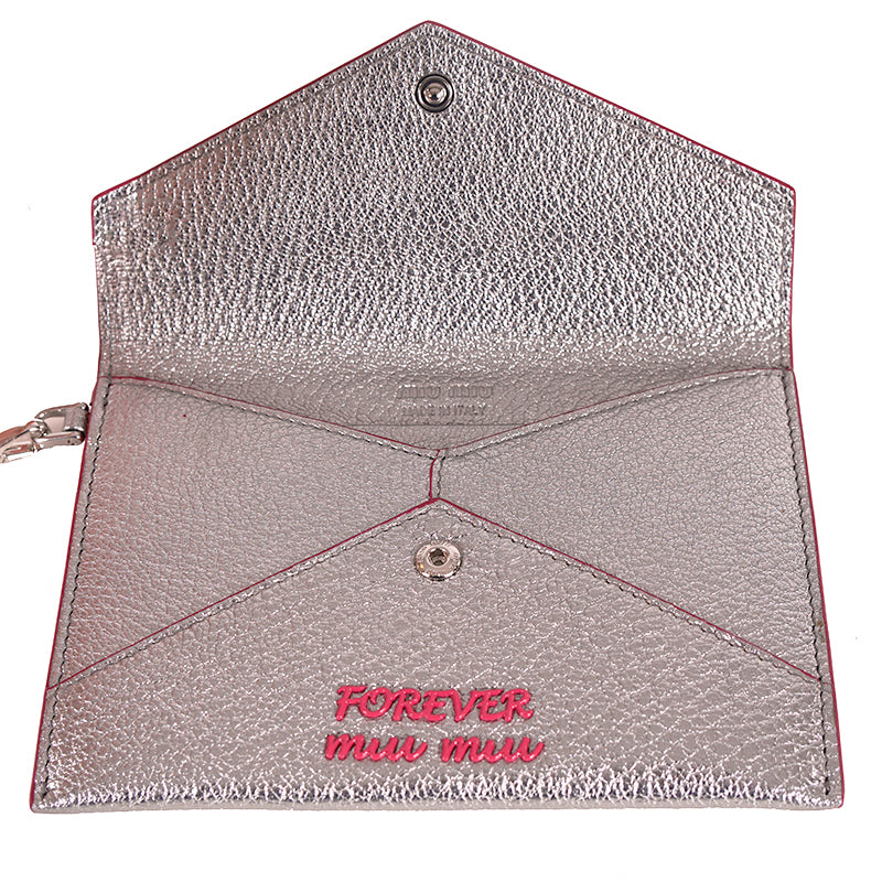 NEW $550 MIU MIU Silver Cromo FOREVER HEART Envelope Madras WRISTLET WALLET NIB