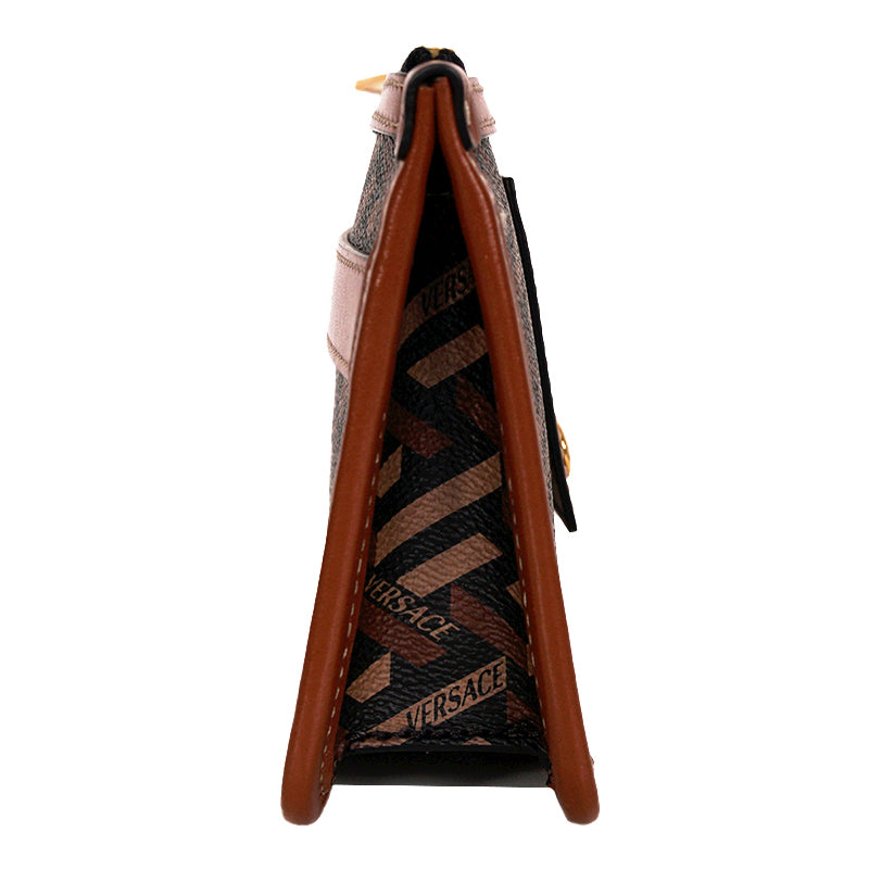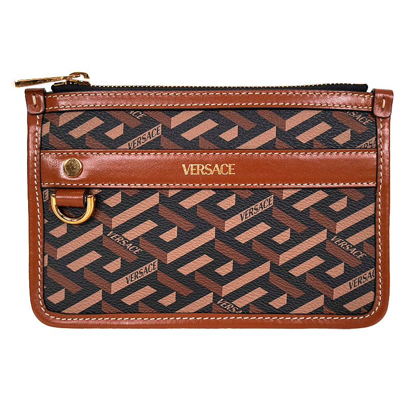 NEW $595 VERSACE Caramel LA GRECA Signature Small Pouch MODULAR CLUTCH Zip BAG