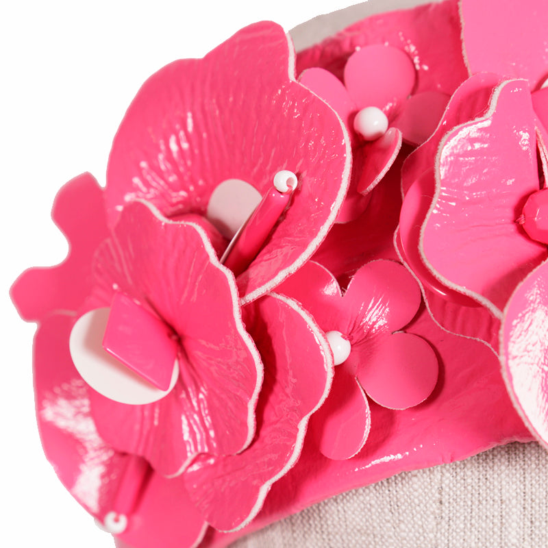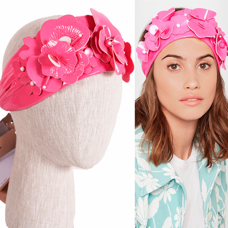 NEW $670 MIU MIU RUNWAY Pink Patent Polyester Embellished FLOWER Retro HEADBAND