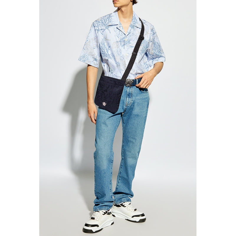 NEW $720 VERSACE Navy Heritage BAROCCO JACQUARD TECH Silver MEDUSA Crossbody BAG