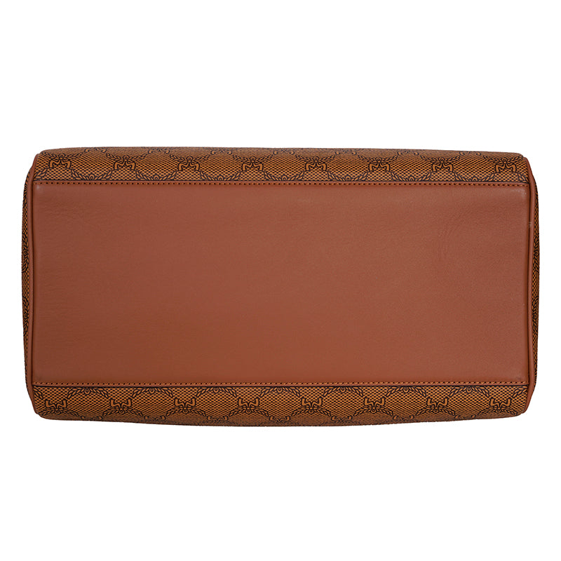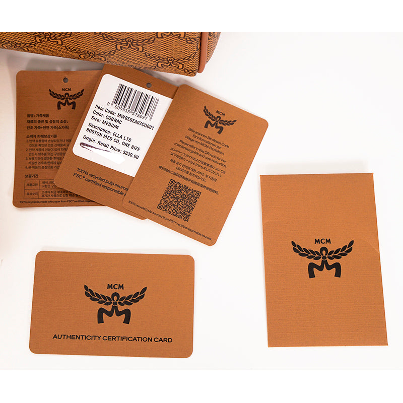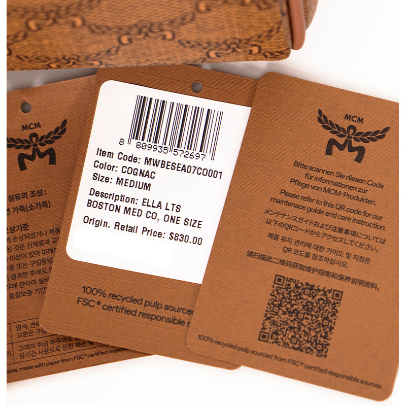 NEW $830 MCM Cognac LAURETOS LOGO Monogram Canvas Medium Ella BOSTON BAG & STRAP