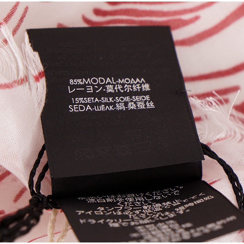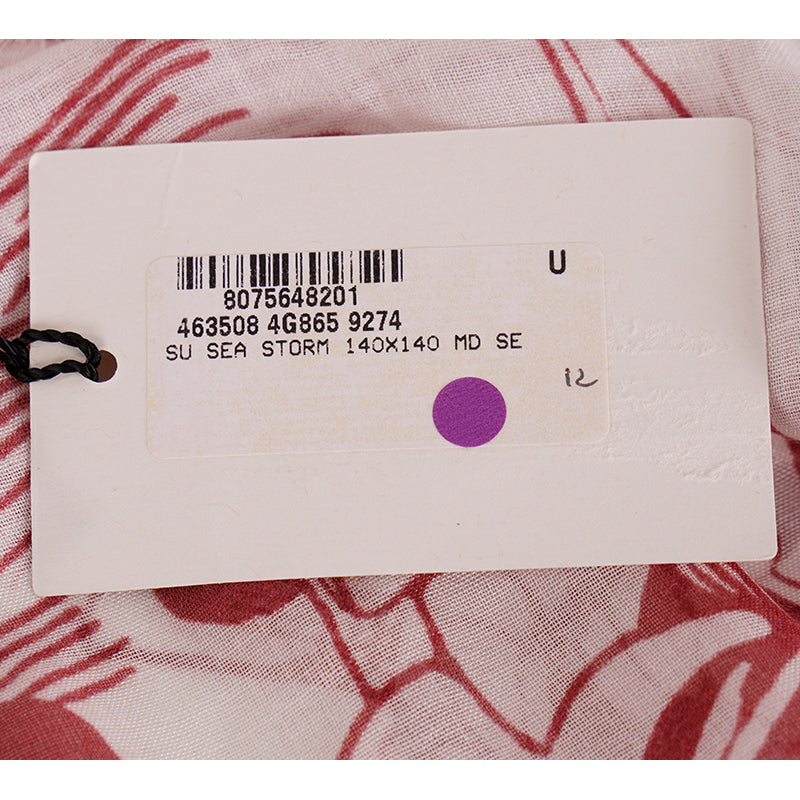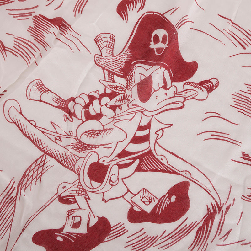 Authentic Gucci scarf in a whimsy print. Ivory woven-fabric enlivened with dark red sketches of Donald Duck as a pirate. Soft modal and silk blend. Sea Storm print. Raw edges. 85% modal, 15% silk. Style 463508. Made in Italy. Sure to get noticed.
