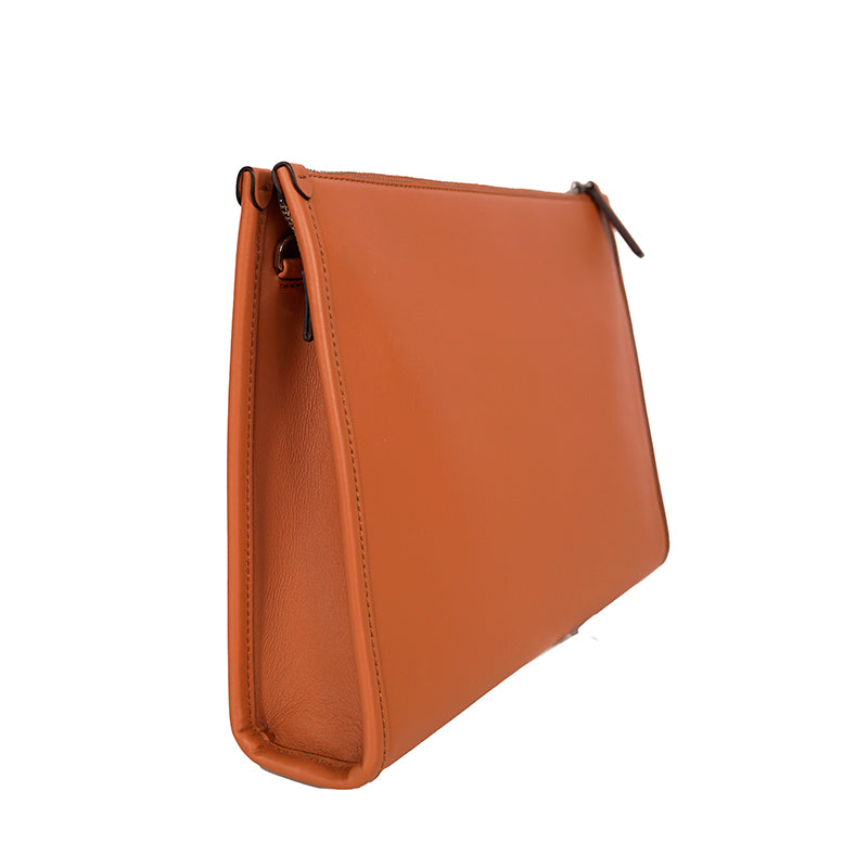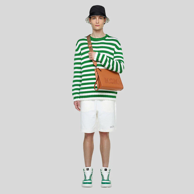 NEW $850 MCM Cognac Spanish Calf Leather LOGO AREN MESSENGER WRISTLET STRAP BAG