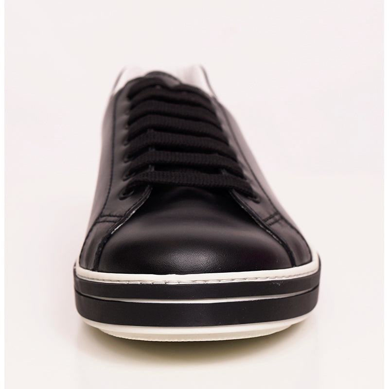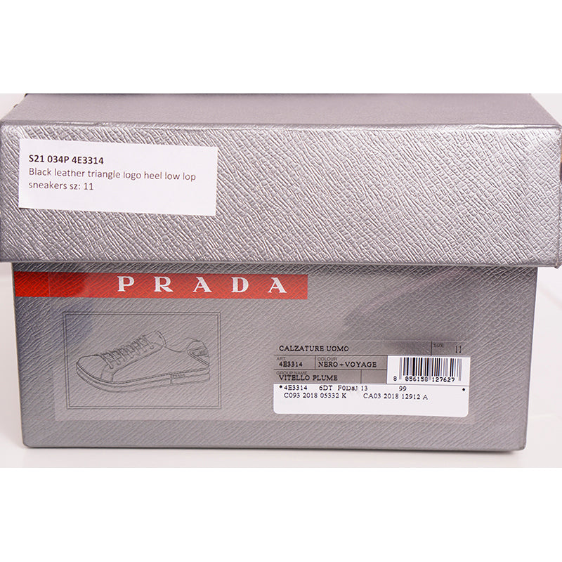 UK 11 US 12 NEW $895 PRADA Mens Black Leather TRIANGLE LOGO Low Top SNEAKERS NIB